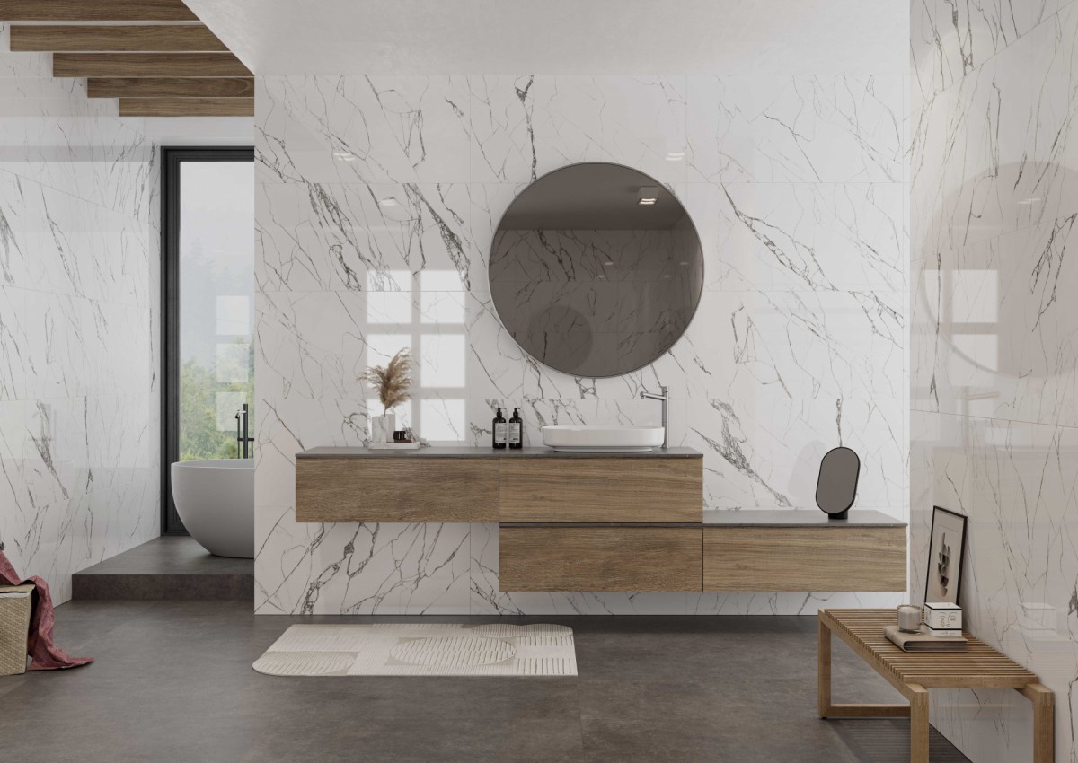 Optez pour un carrelage mural en porcelaine de haute qualité avec un élégant effet marbre et une finition mate. Ce carrelage rectifié garantit une précision exceptionnelle, parfait pour apporter une touche sophistiquée et moderne à vos espaces intérieurs. Produit en série en choix 1 pour assurer une uniformité sans pareille.